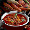 "Gulyas" means cattle- or sheep-herder in Hungarian. This hearty soup has traditional roots in the foods prepared by rustic herders, long ago. Serve the soup in bowls topped with sour cream.