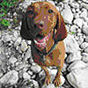 The Vizsla is a natural hunter endowed with an excellent nose and an outstanding trainability. Although they are lively, gentle mannered, demonstrably affectionate and sensitive, they are also fearless and possessed of a well-developed protective instinct. The Vizsla thrives on attention, exercise, and interaction. It is highly intelligent, and enjoys being challenged and stimulated, both mentally and physically. The Vizsla wants to be close to its owner as much of the time as possible. Many Vizslas will sleep in bed with their owners and, if allowed, will burrow under the covers. My vizsla girl, named Tücsök ('Cricket' in English)